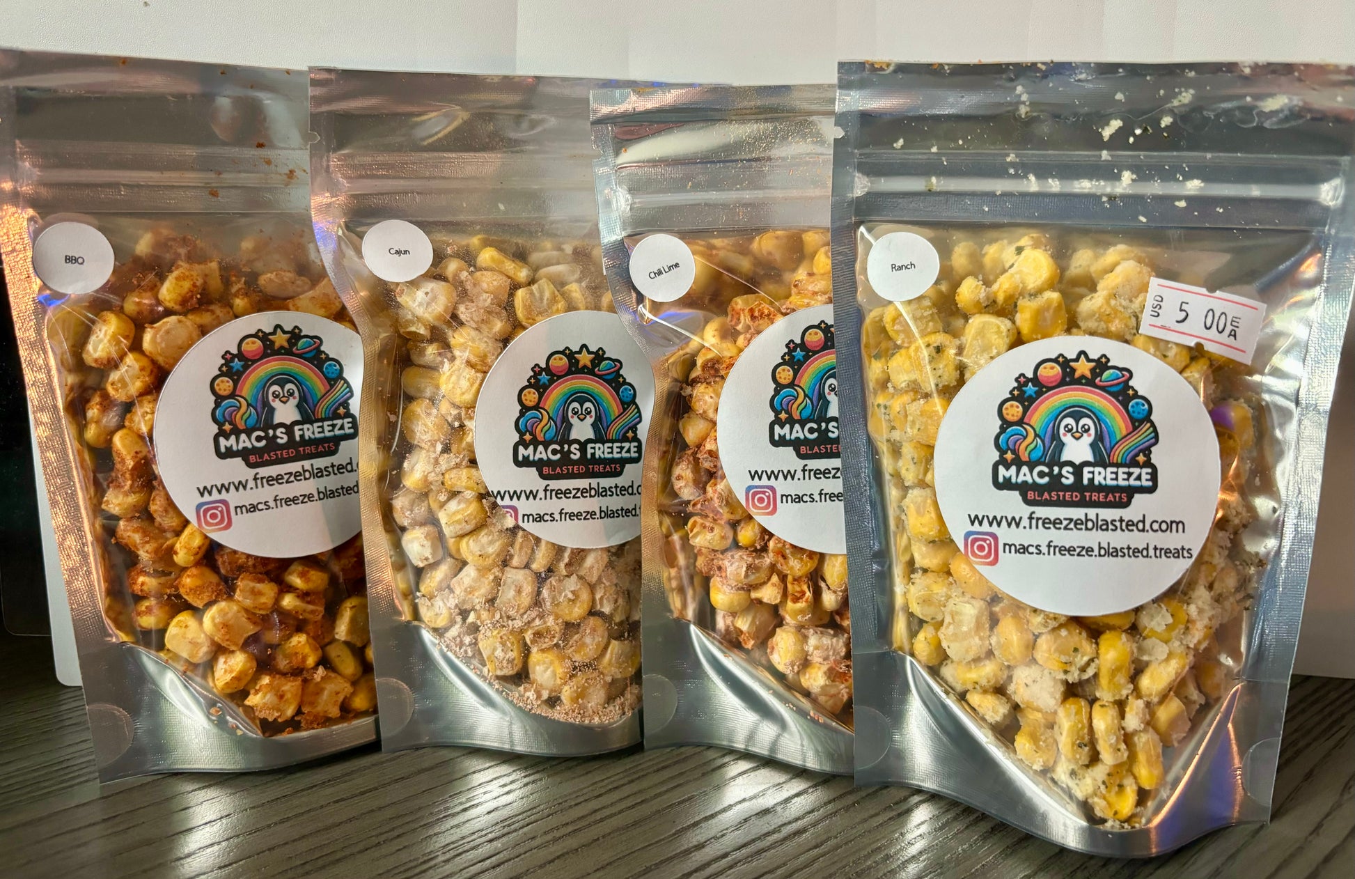 Freeze dried corn for snacking, in various flavors. Imagine corn nuts without breaking your teeth!